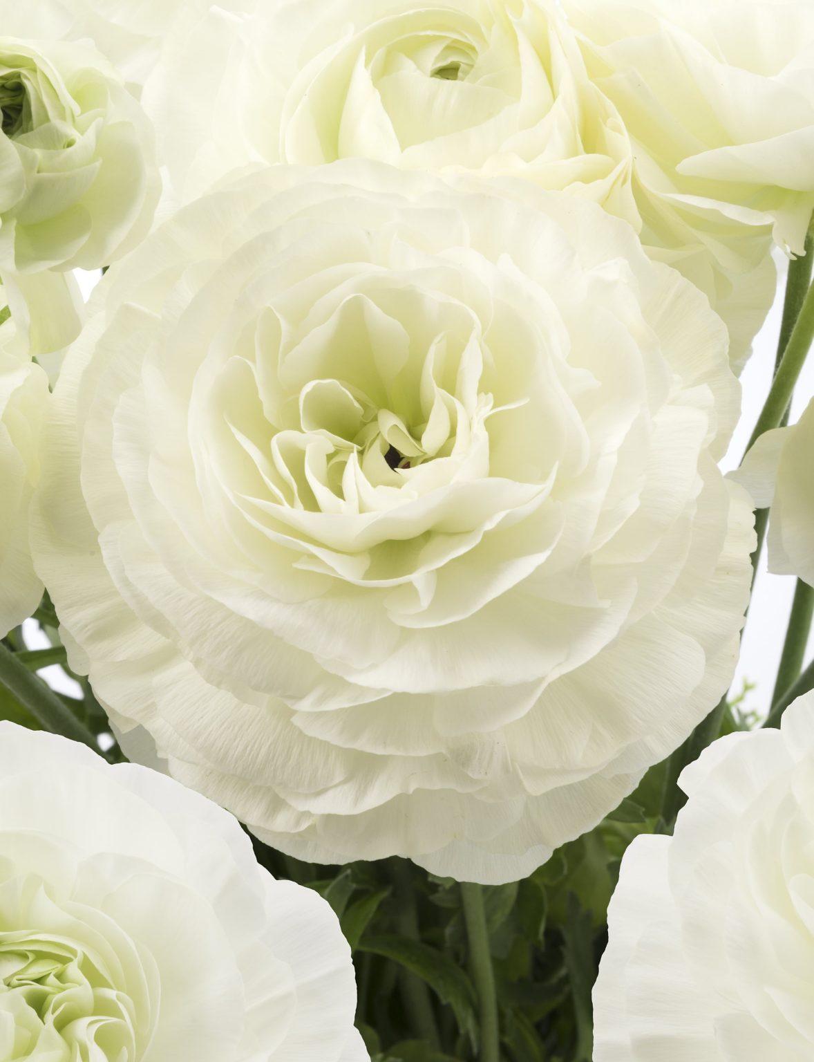 Ranunculus Romance™ Courchevel® stands out for its large, pure white flowers that immediately grab attention. This bright, fresh Ranunculus gives any bouquet a stylish, sleek look.