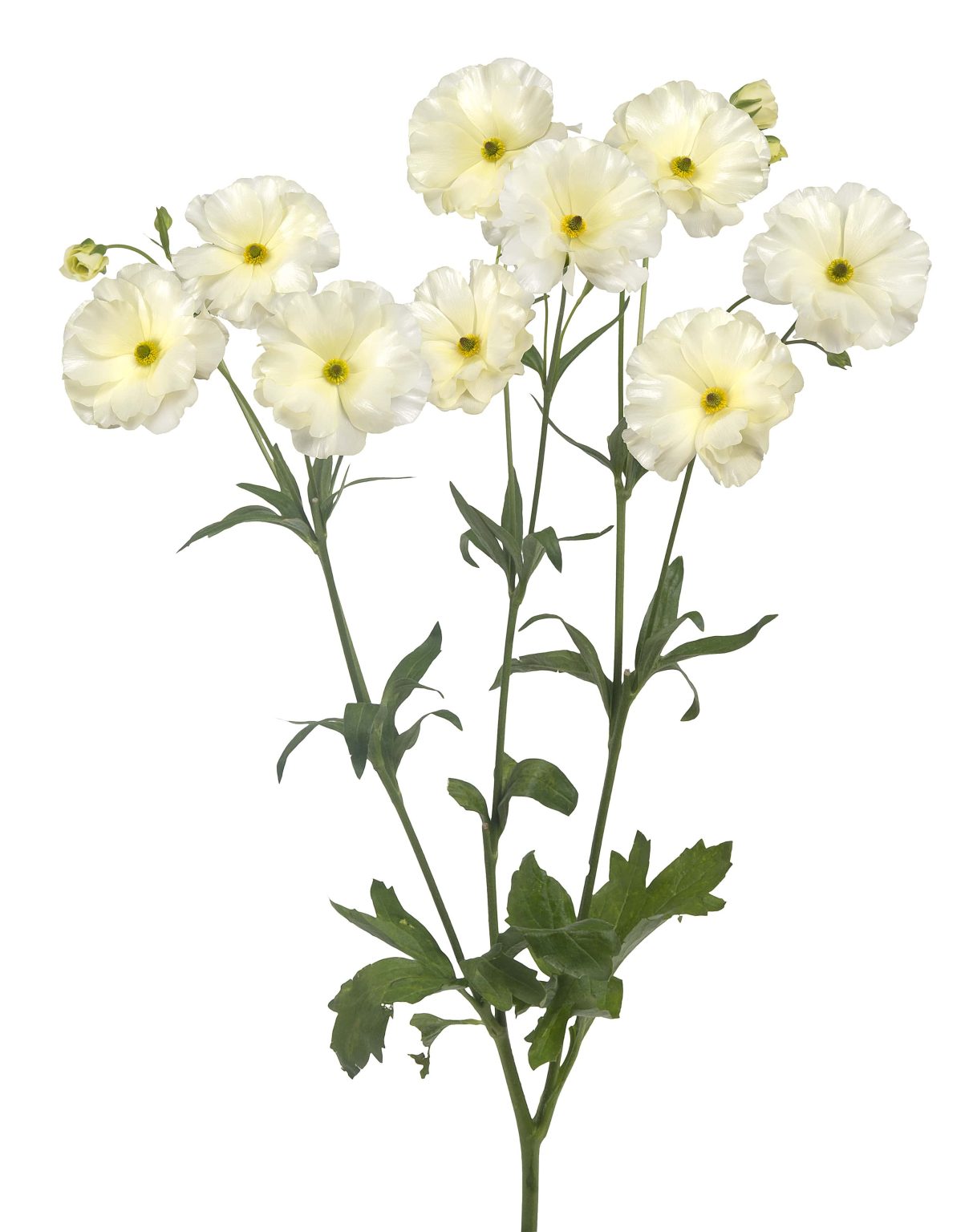 The Ranunculus Butterfly™ Graces® stands out within the Butterfly™ assortment for its bright, almost white flower color just a bit fresher than that of Ariadne®. The combination of its light petal and soft green buds gives it a pure, natural look, perfect for romantic, soothing bouquets.