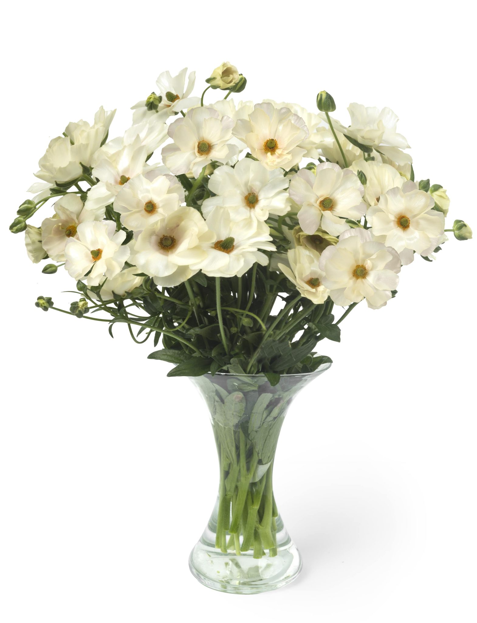 Ranunculus Butterfly™ Keramos® is a sophisticated white and cream Ranunculus that excels in softness and elegance. With an average of 5 to 8 flowers per stem and a vase life of about two weeks, this is a reliable and stylish choice for any floral arrangement. The subtle hues create a fresh, luxurious look that is perfect for both romantic and modern bouquets.