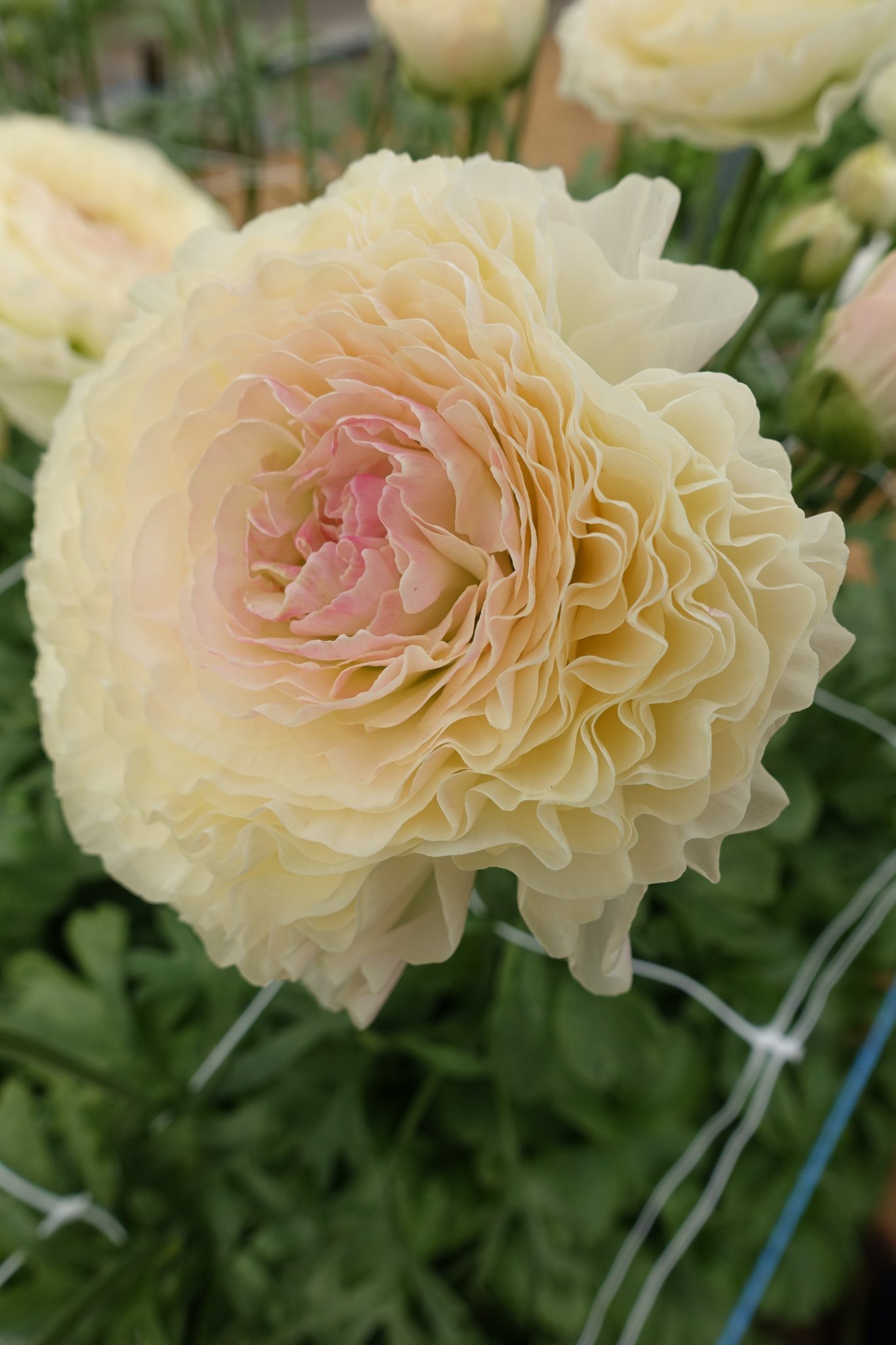 Ranunculus Romance™ Morvan® is a graceful and unique variety within the Romance™ series. The flowers have a distinctive shape with particularly ruffled petals and open in a soft cream color with a subtle pink nuance. As the flower develops, an increasingly distinct light pink glow appears, creating an elegant and beautiful color gradient. Morvan® combines beauty, versatility and rich flowering, making it a valuable addition to any assortment.