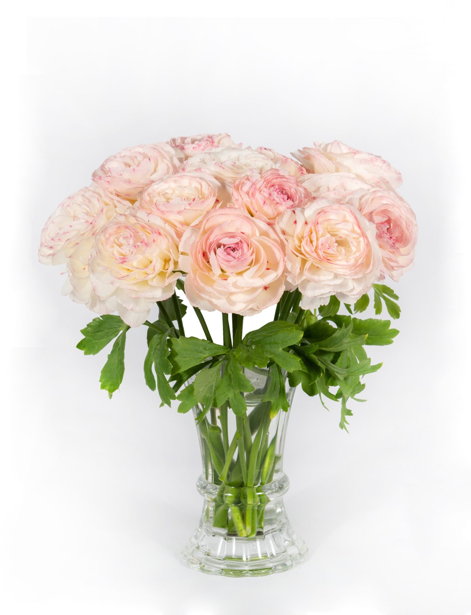 Ranunculus Romance™ Orleans® is a special and stylish variety within the Romance™ range. The flowers open in a soft cream color and feature delicate pink dots on the petals, giving the flower a sophisticated look. Orléans® combines a large, full flower size with sturdy, long stems, making this variety outstanding in both bouquets and arrangements. With its unique color accents and elegant flowers, Orléans® is a valuable and versatile addition to any assortment.