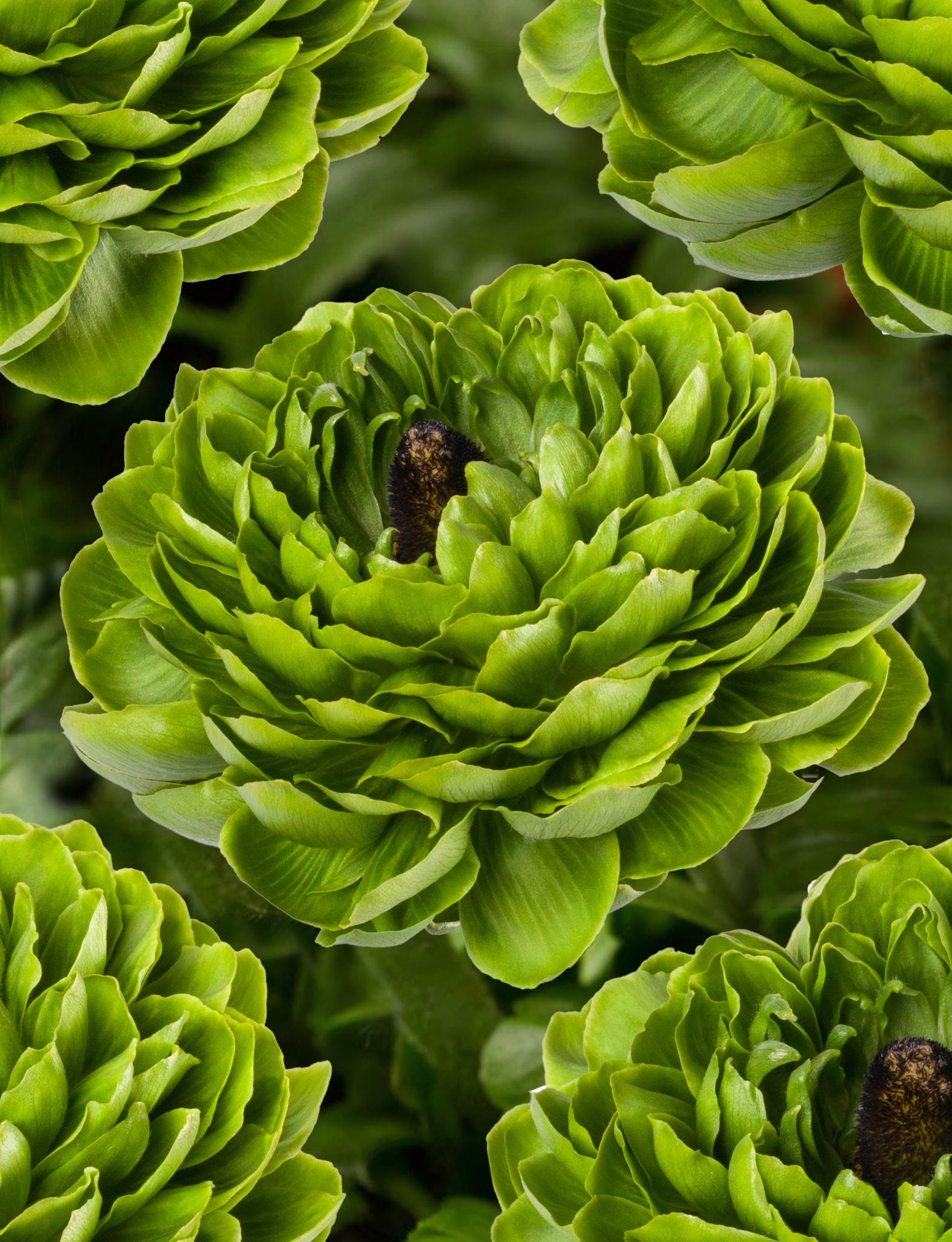 Ranunculus Romance™ Pomerol® is an elegant and distinctive variety within the Romance™ assortment. The flowers are completely green in color and are combined with striking petals, creating a unique and exclusive look. Pomerol® offers a surprising color accent in bouquets and arrangements. With its attractive size and refined flower shape, Pomerol® makes a special addition to any assortment.