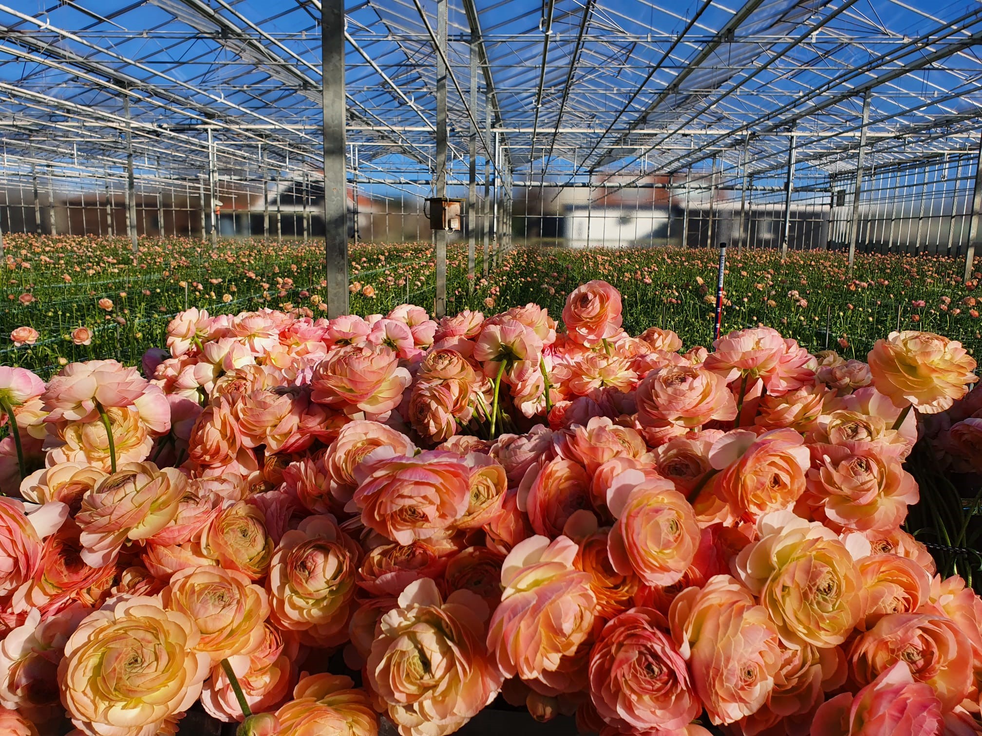 Maak kennis met de Ranunculus Romance™ Maritime®, een werkelijk prachtige ranunculussoort die indruk maakt met uitzonderlijk grote bloemen. Aanvankelijk hebben de bloemen een zachte crème-gele kleur, die na verloop van tijd overgaat in een elegante, zachtroze tint die bij warmere temperaturen steeds intenser roze wordt. De bloemen groeien op stevige stelen van vaak 80 cm, waardoor ze perfect zijn voor boeketten of als pronkstuk in de tuin. Maritime® combineert schoonheid, grootte en duurzaamheid in één schitterende bloem.